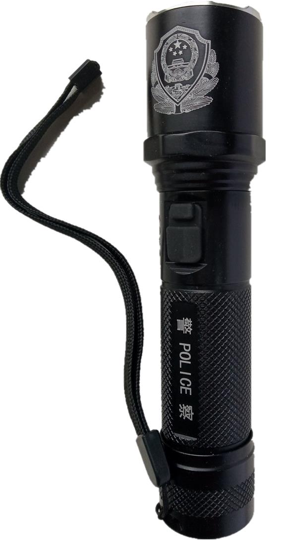 7 | 标识 | 7.1 强光手电正面有警徽图案和“警POLICE察”字样,警徽图案符合GA244的规定,字体为黑体,字高5mm;强光手电背面有“强光手电”字样,字体为黑色,字高5mm。强光手电侧面靠近USB充电口位置有充电孔标识。在警徽背面对应位置有强光手电产品编号,字体为黑色,字高3.5mm。在筒身内侧应有负极标识。警徽、字样、标识和编号用激光雕刻。图案、文字、标识清晰完整、对称。 | |